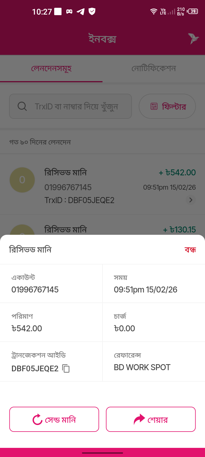 রিসিভড মানি ৳542.00