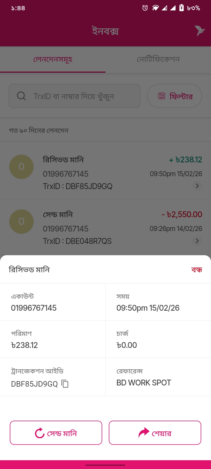 রিসিভড মানি ৳238.12