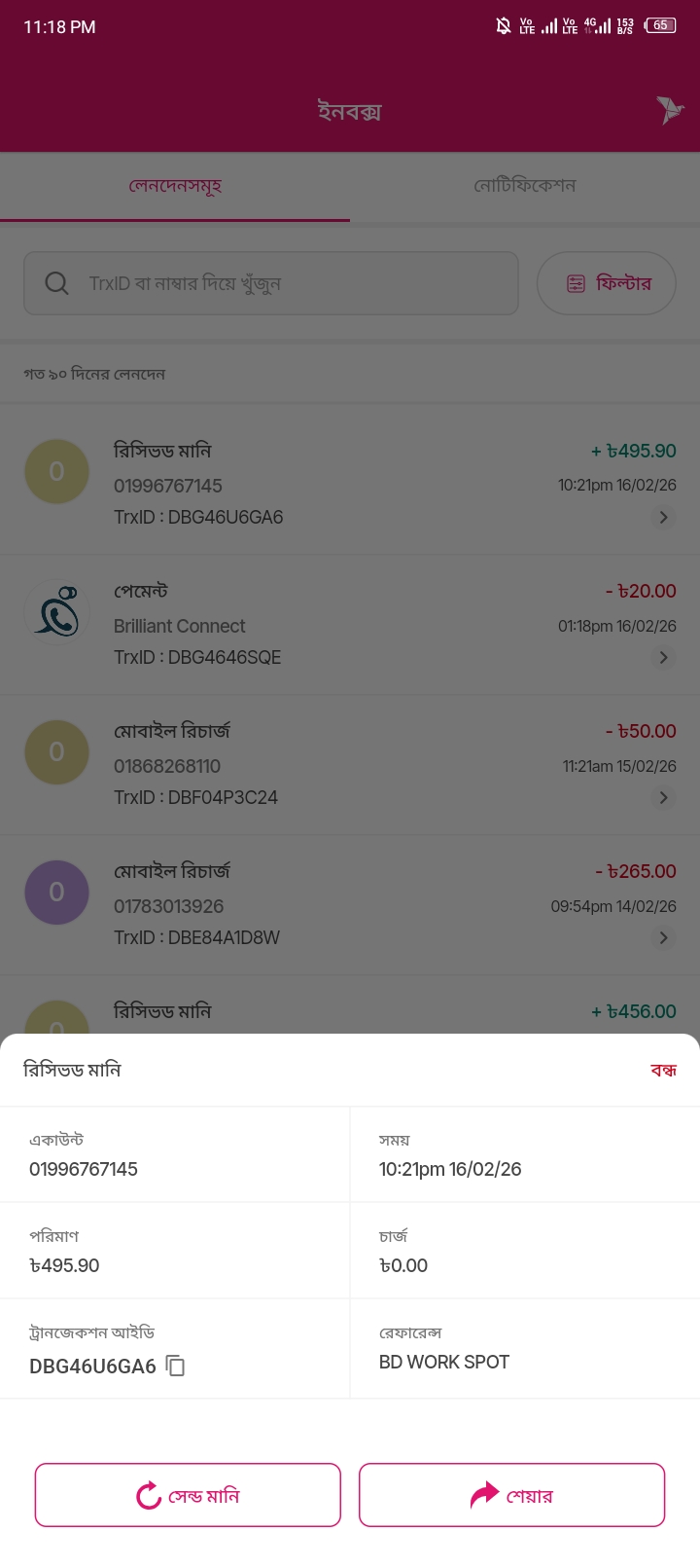 রিসিভড মানি ৳495.90
