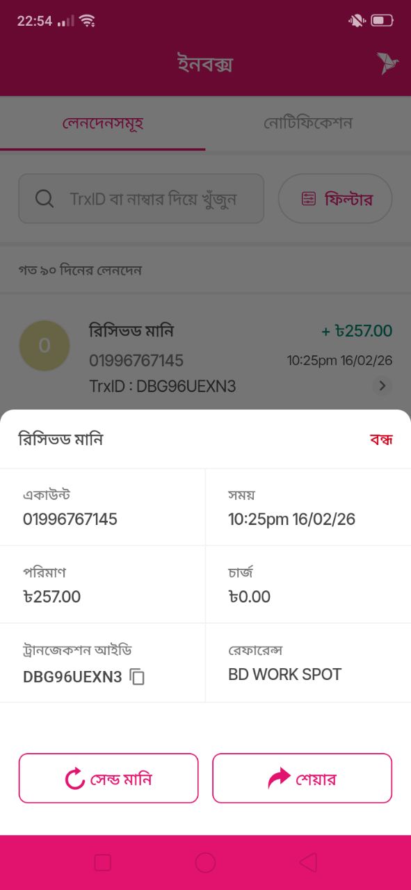 রিসিভড মানি ৳257.00