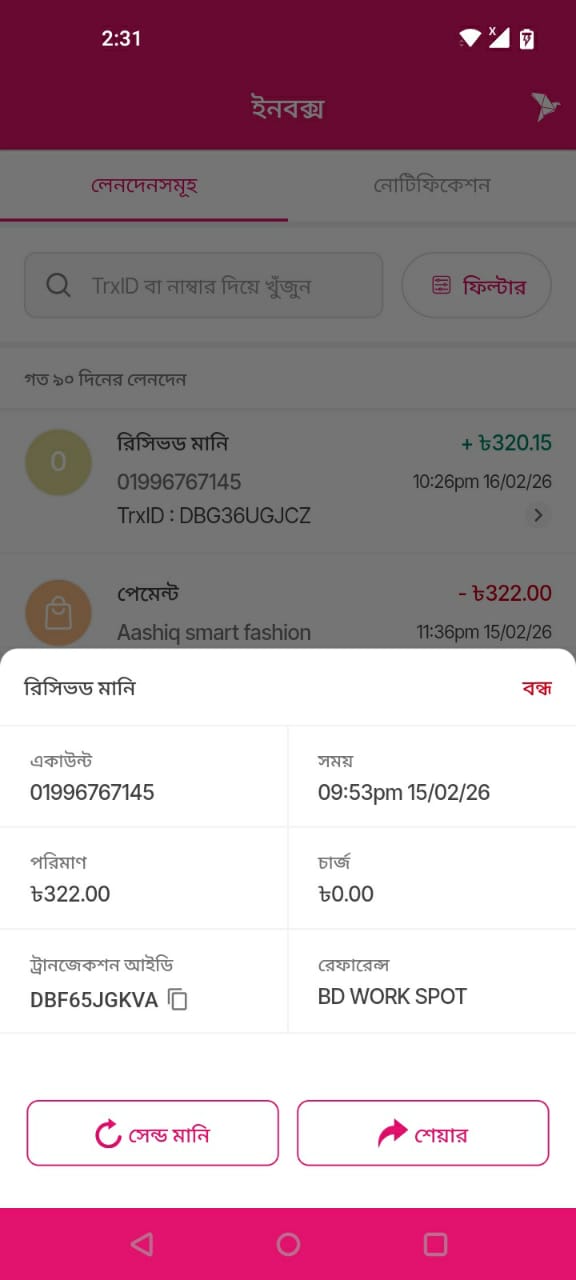 রিসিভড মানি ৳322.05