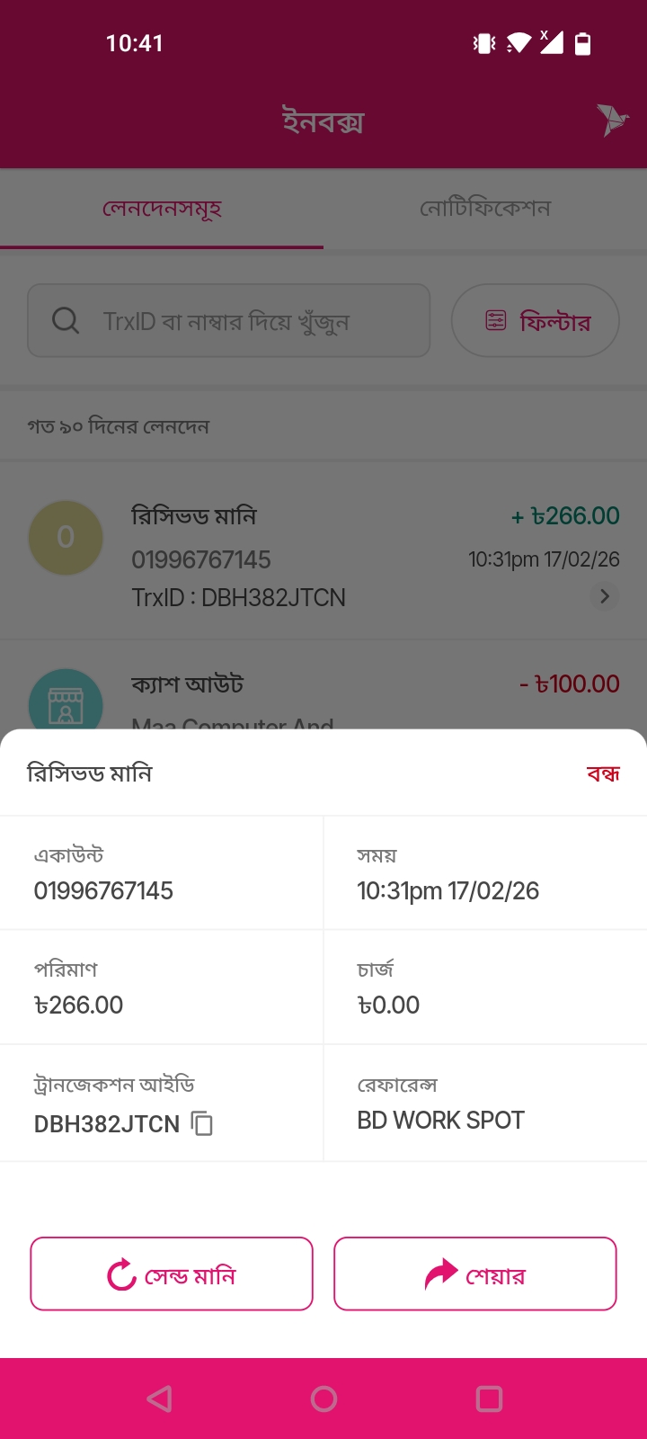 রিসিভড মানি ৳266.00